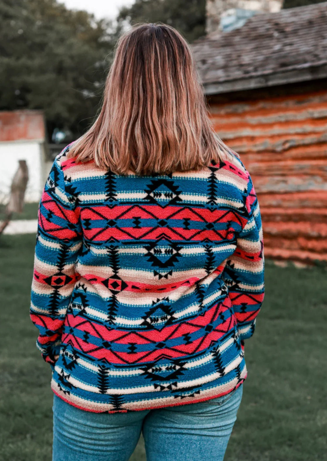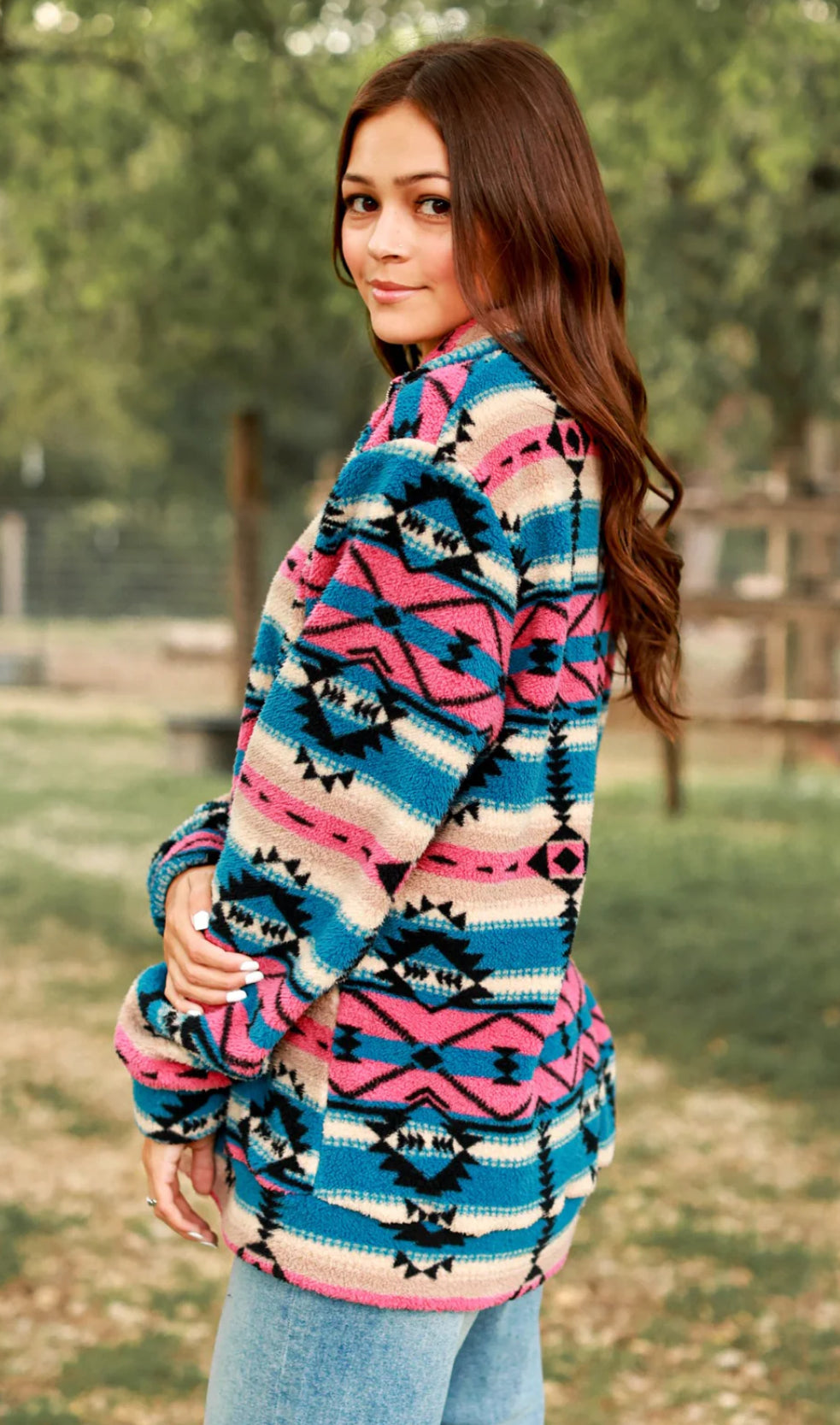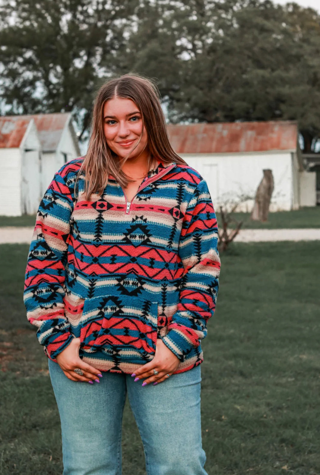 Keeping it classic with the Blue & Pink Aztec Print. Keep you warm all season long with a sherpa pullover for any rugged day.