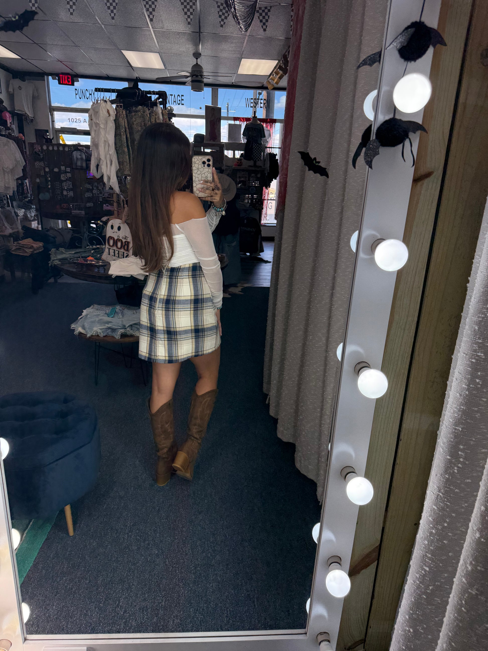 Elevate your style with Legs Get Cozy - featuring iconic plaid skirts that can seamlessly transition from business attire to western-inspired looks. Designed for every mood and perfect for all seasons. Add some boots and you're ready to conquer the day.