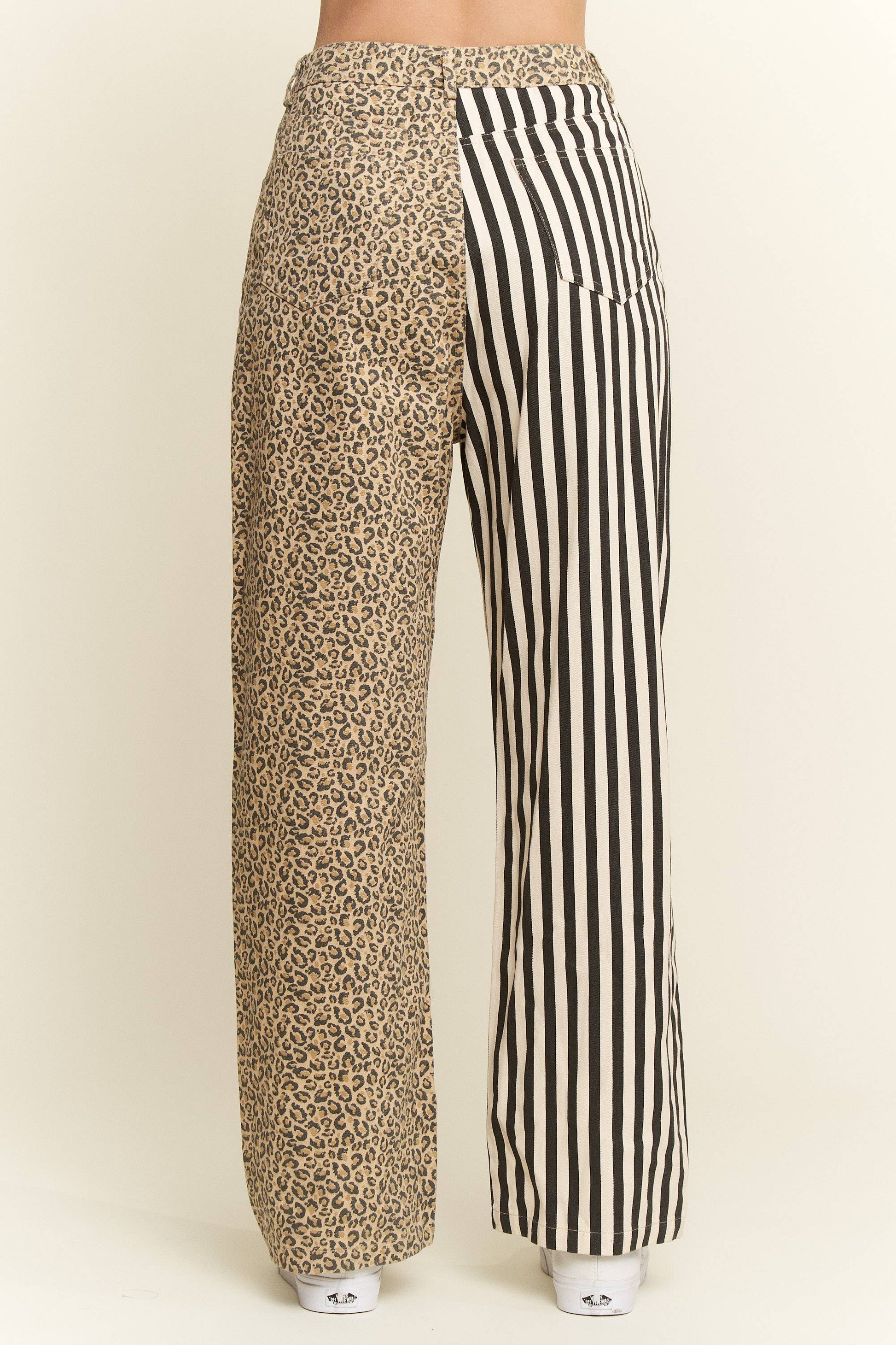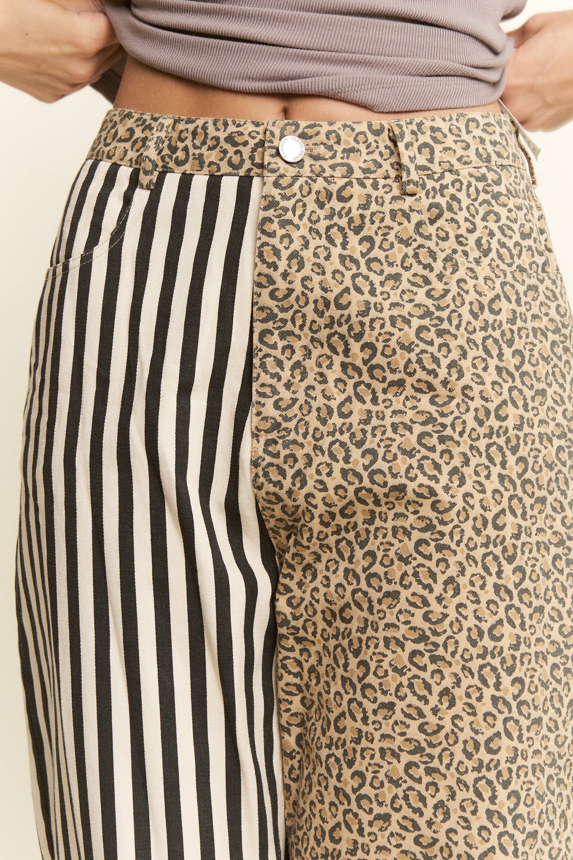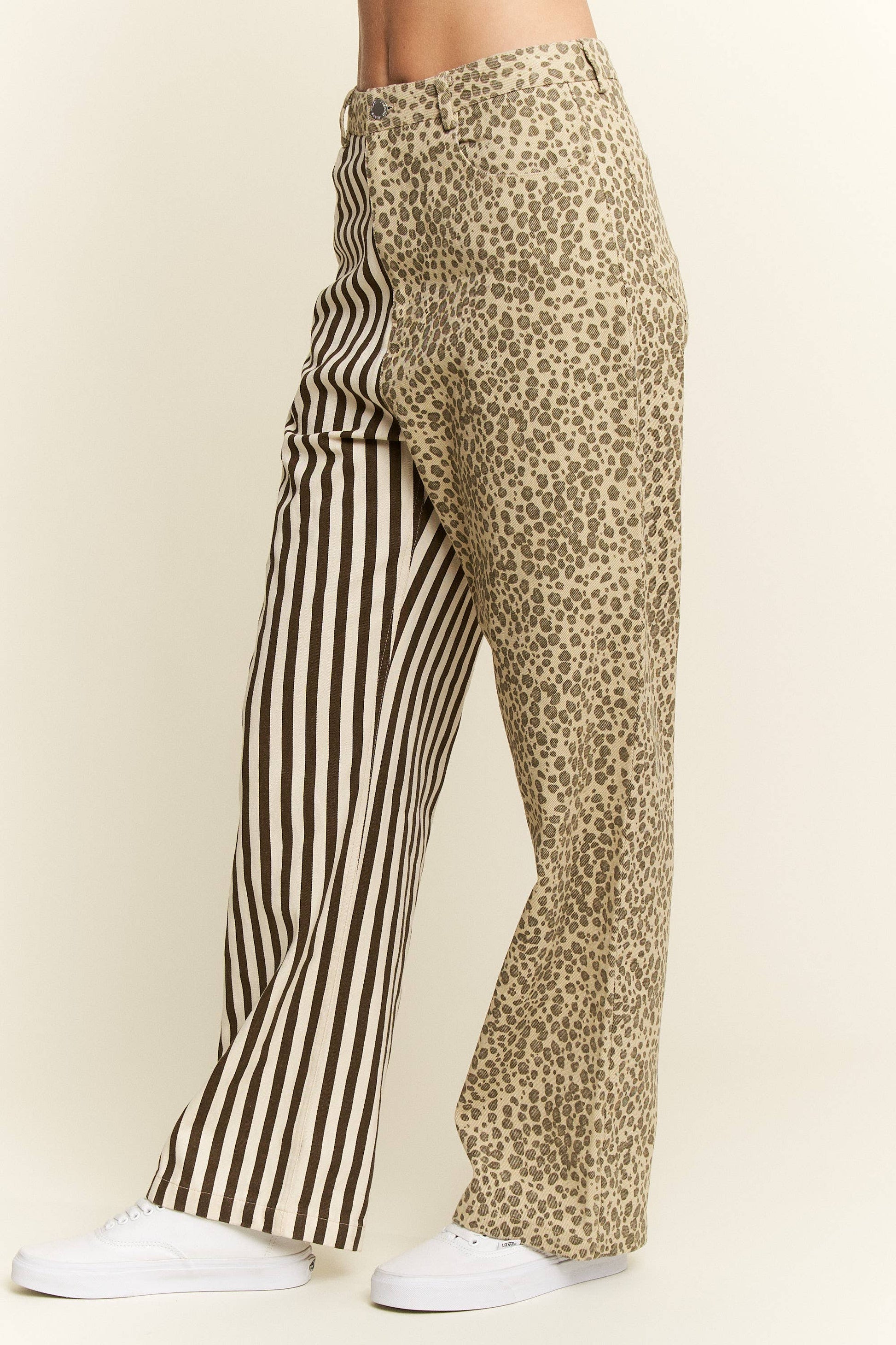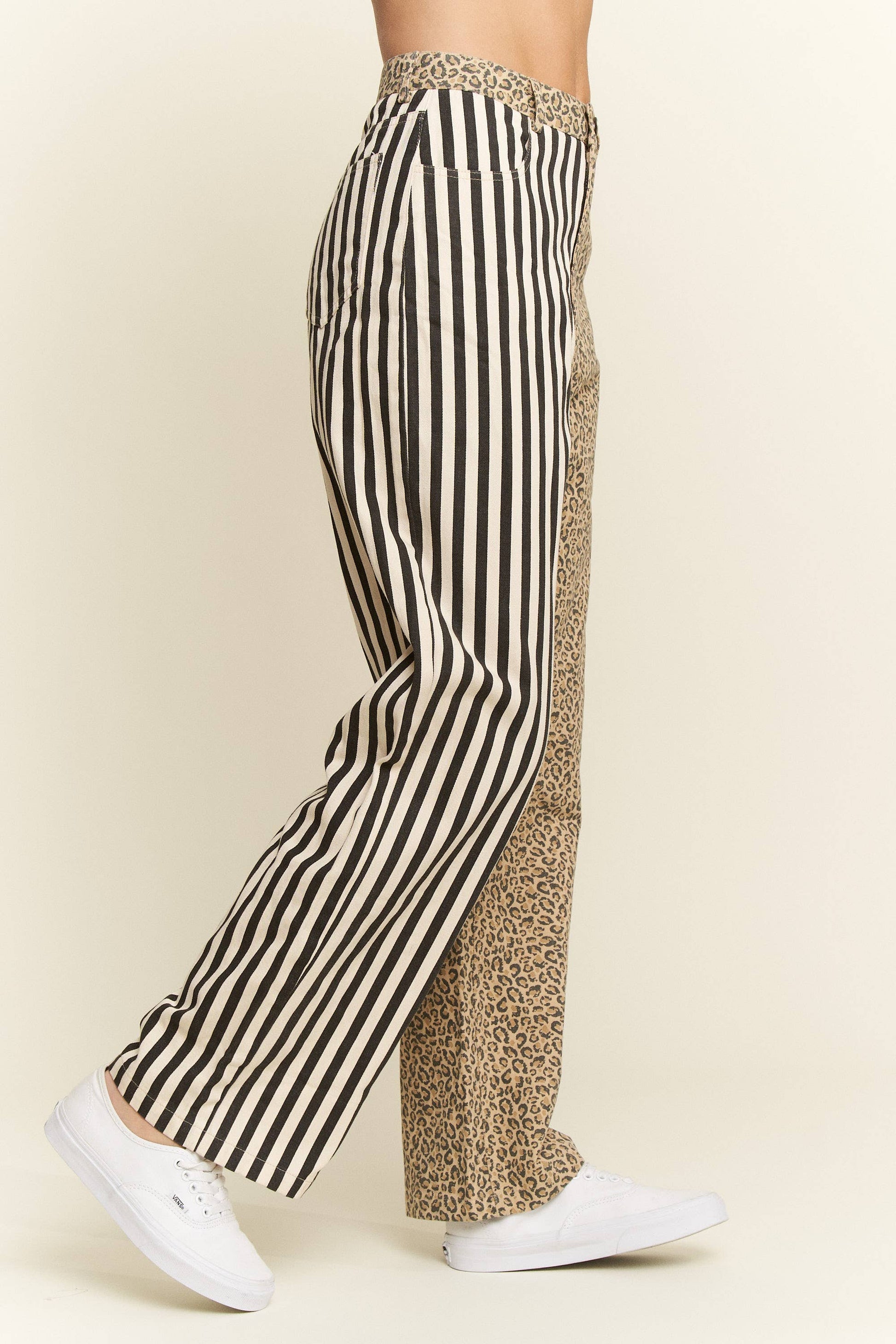 MIX & MATCH LEOPARD-STRIPE PANTS