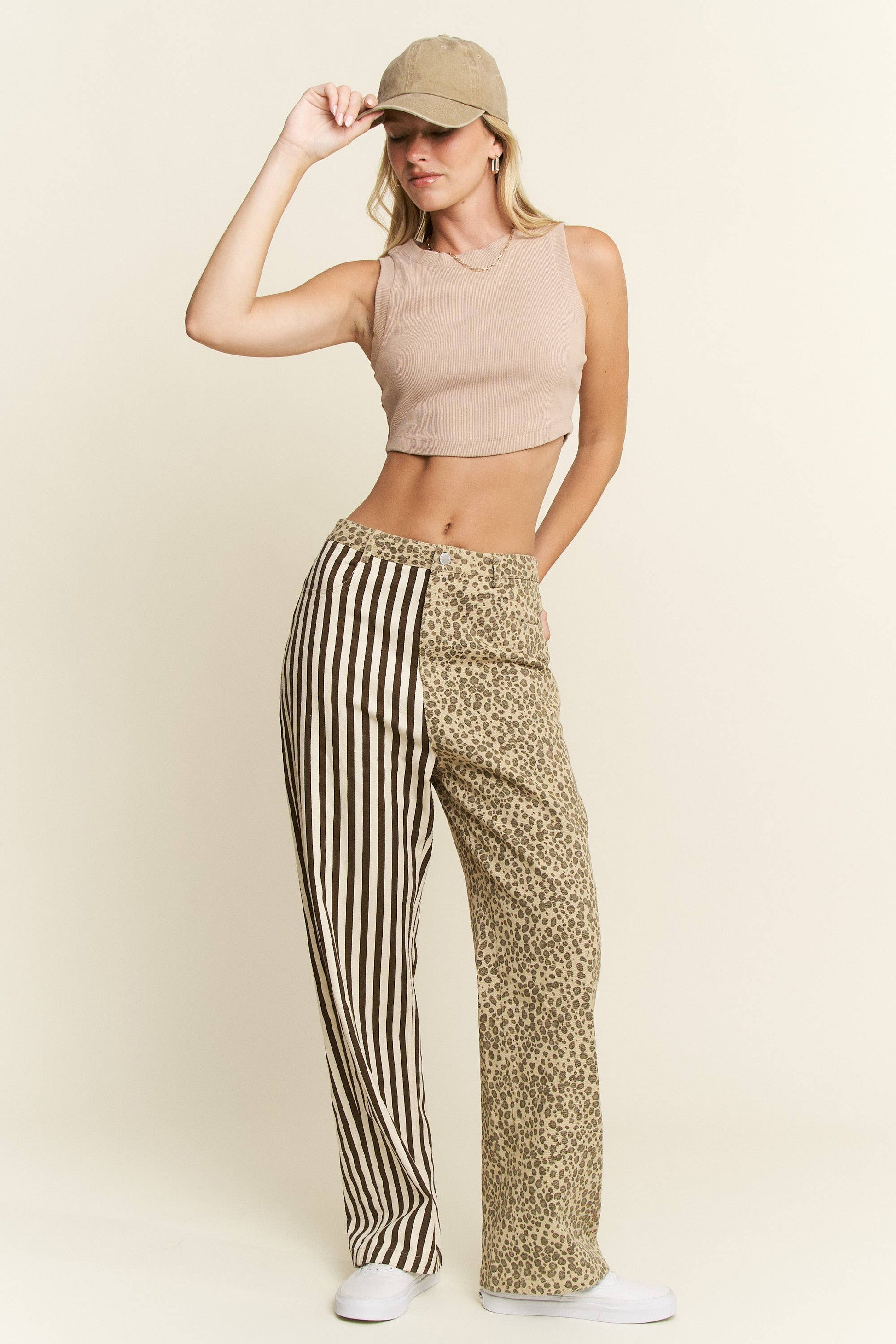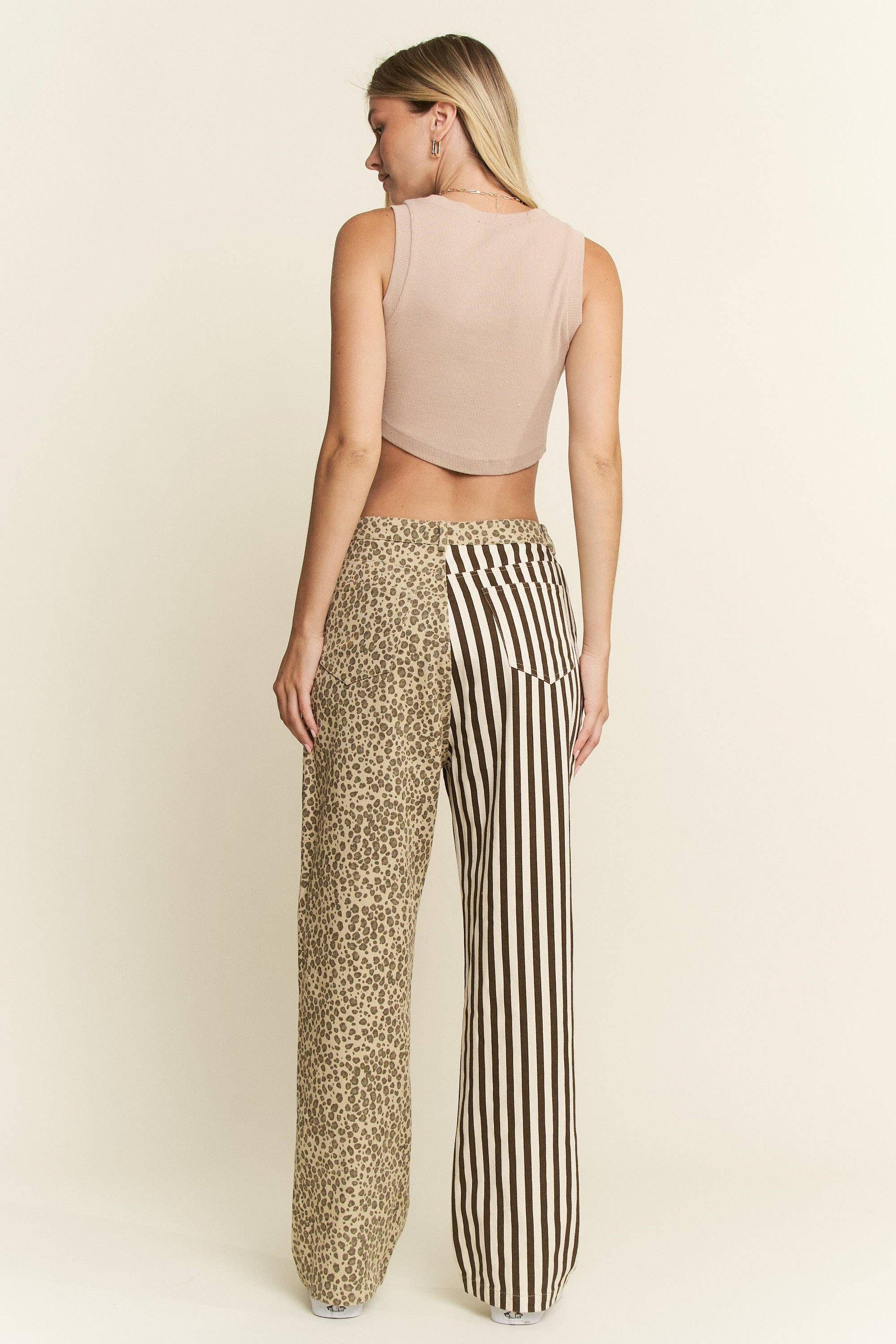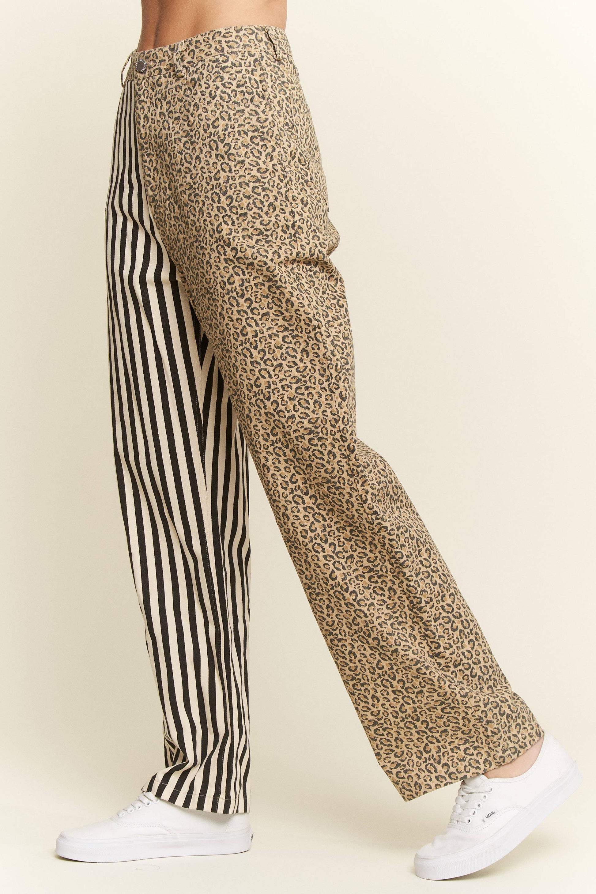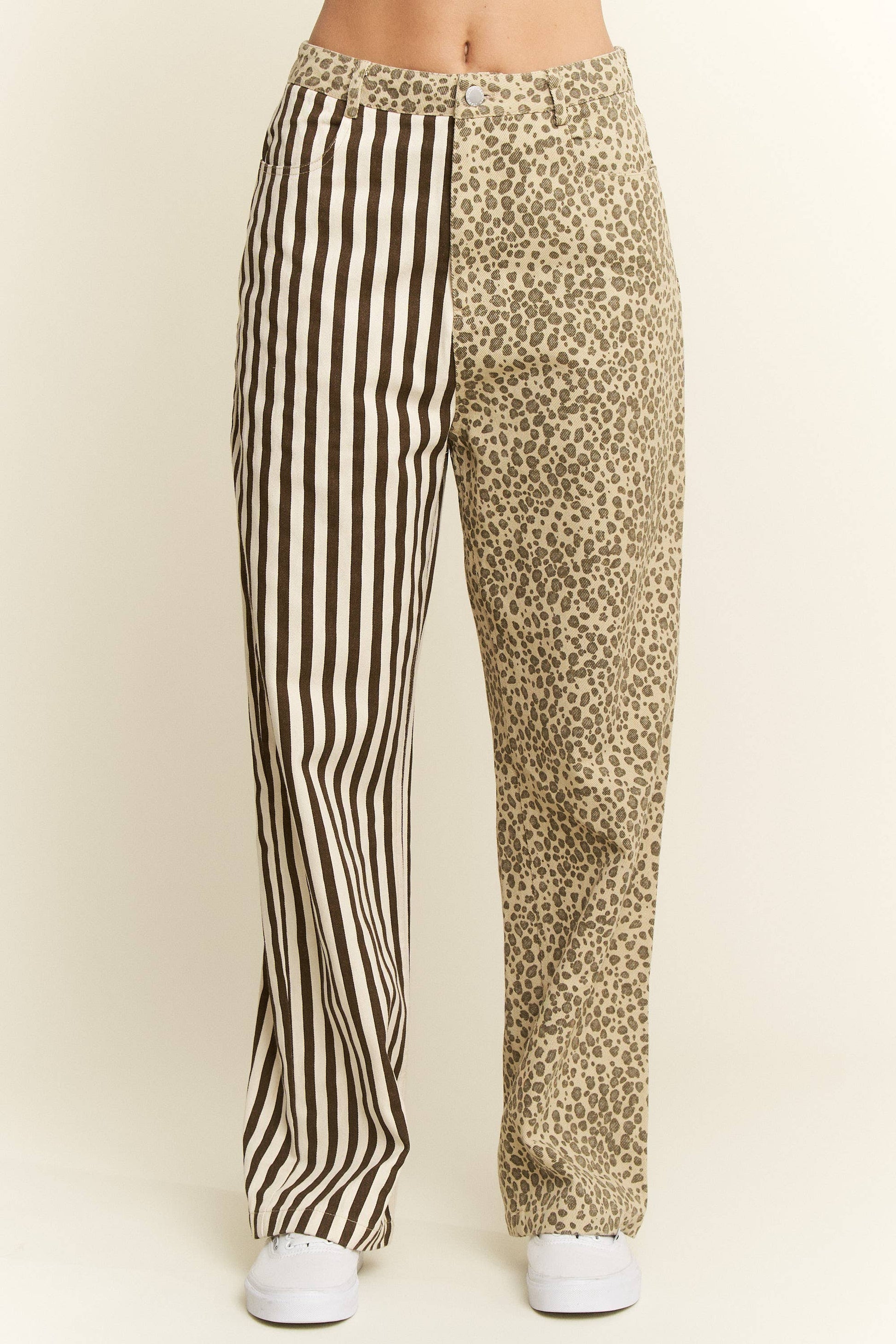MIX & MATCH LEOPARD-STRIPE PANTS