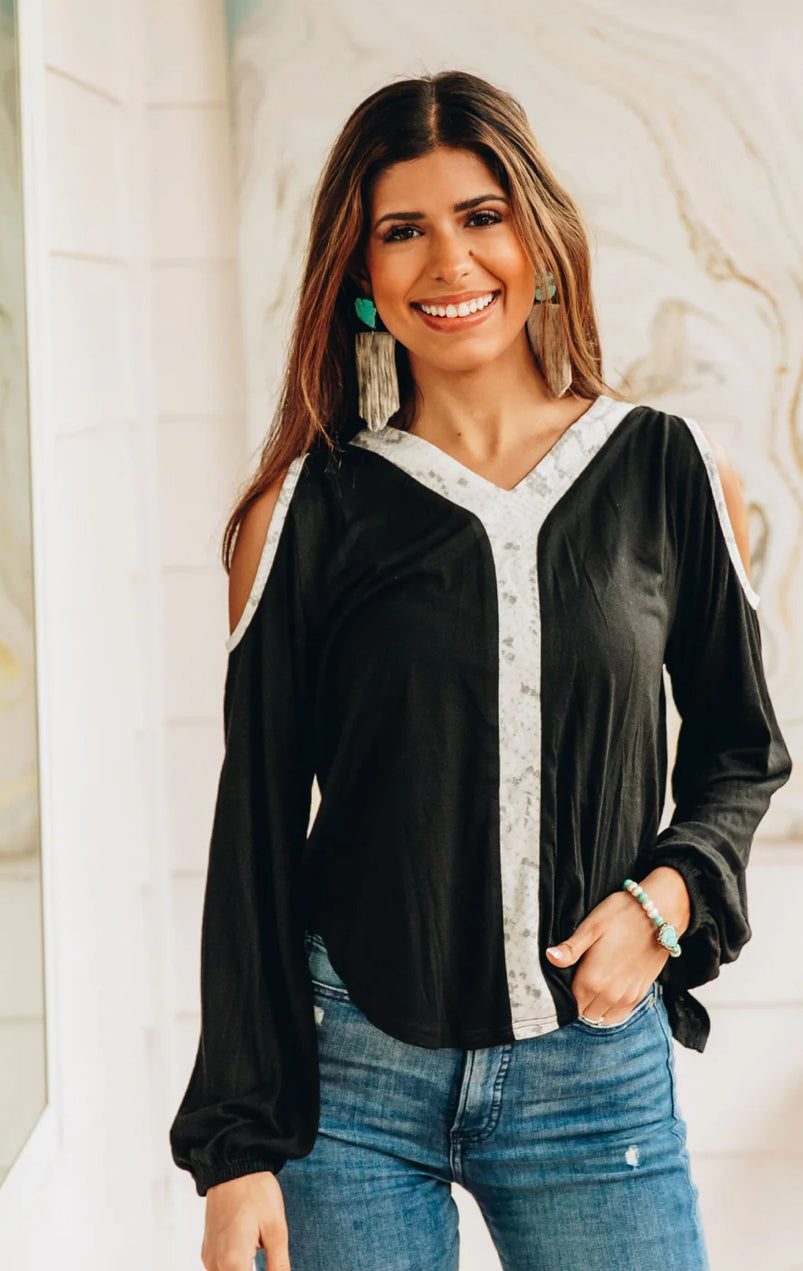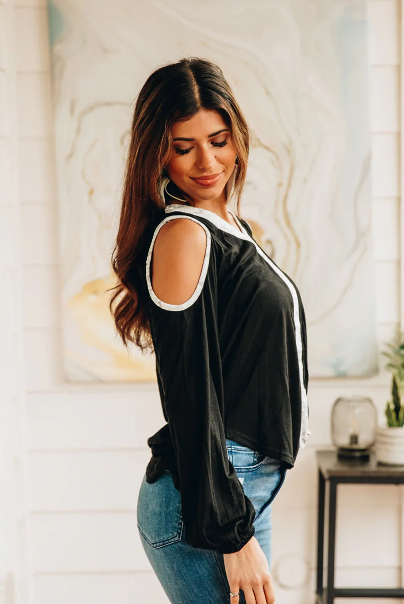 Light Weight Fabric thats breezy and comfortable. Has an eyelet hole at the shoulders to make a basic long sleeve fun.